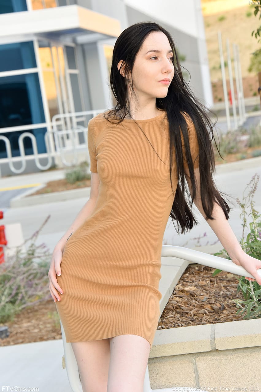 Sovány fiatal Maia kint megmutatja a melleit és szétnyitja a punciját és a seggét